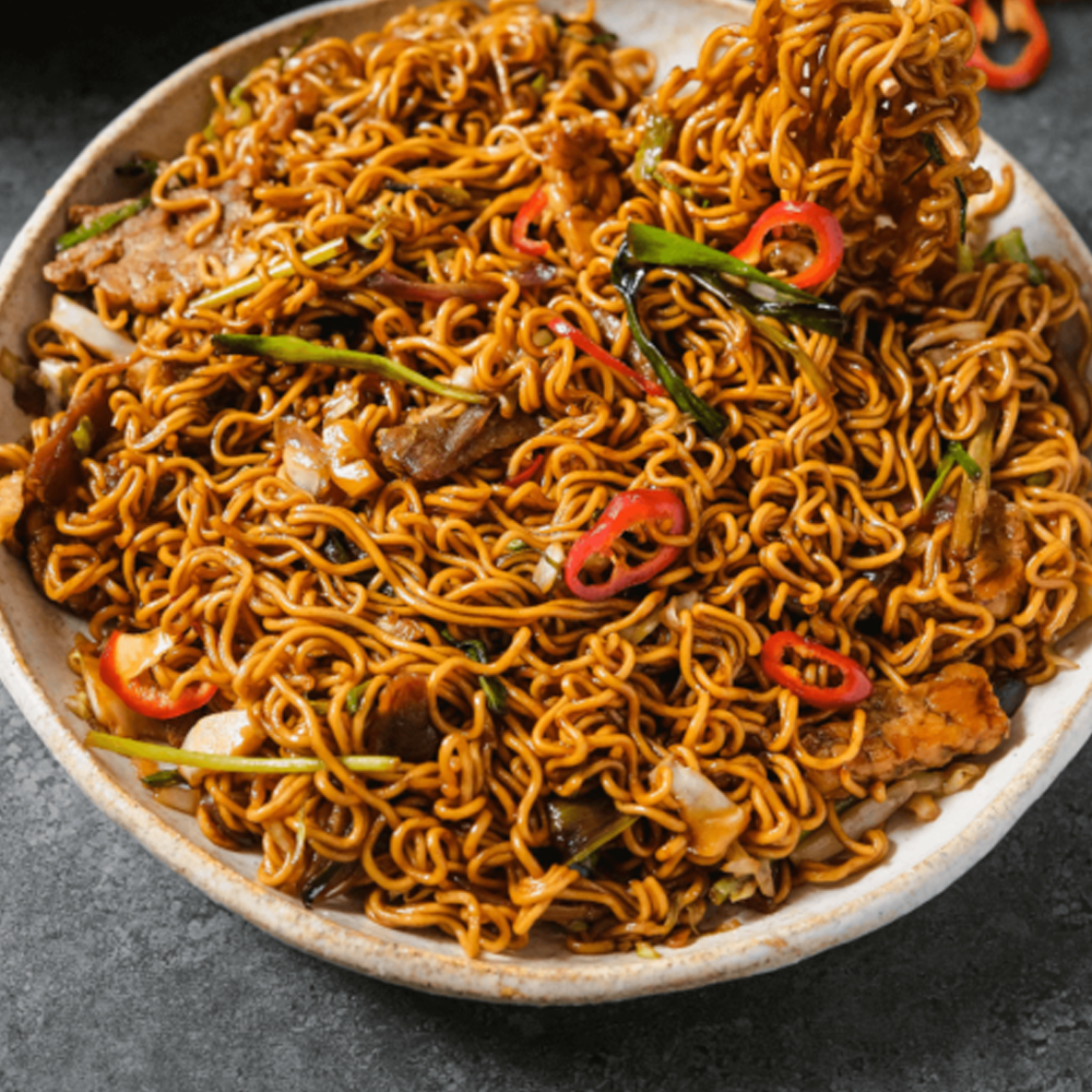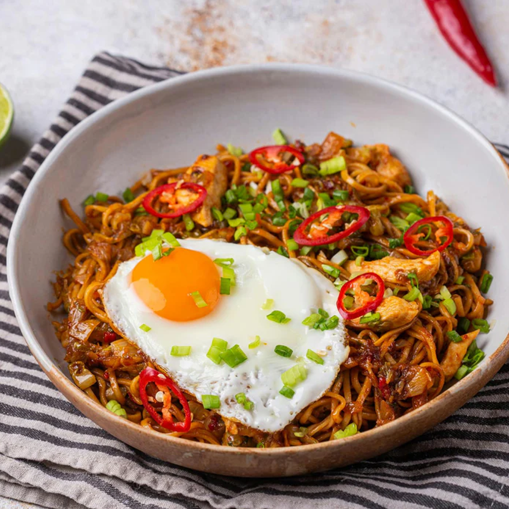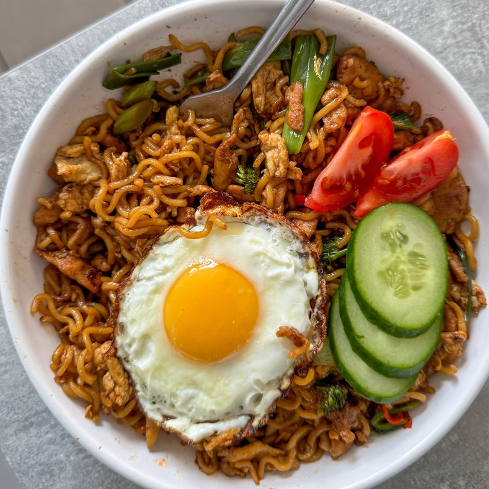 Indonesian-style stir-fried noodles with a sweet and savoury soy-based sauce, tossed with vegetables, egg, and your choice of protein — bold, flavourful, and comforting.