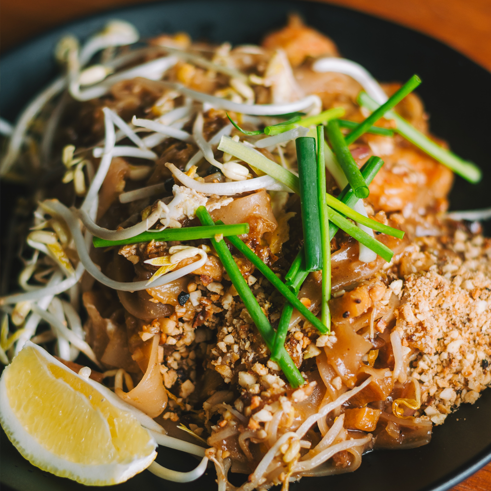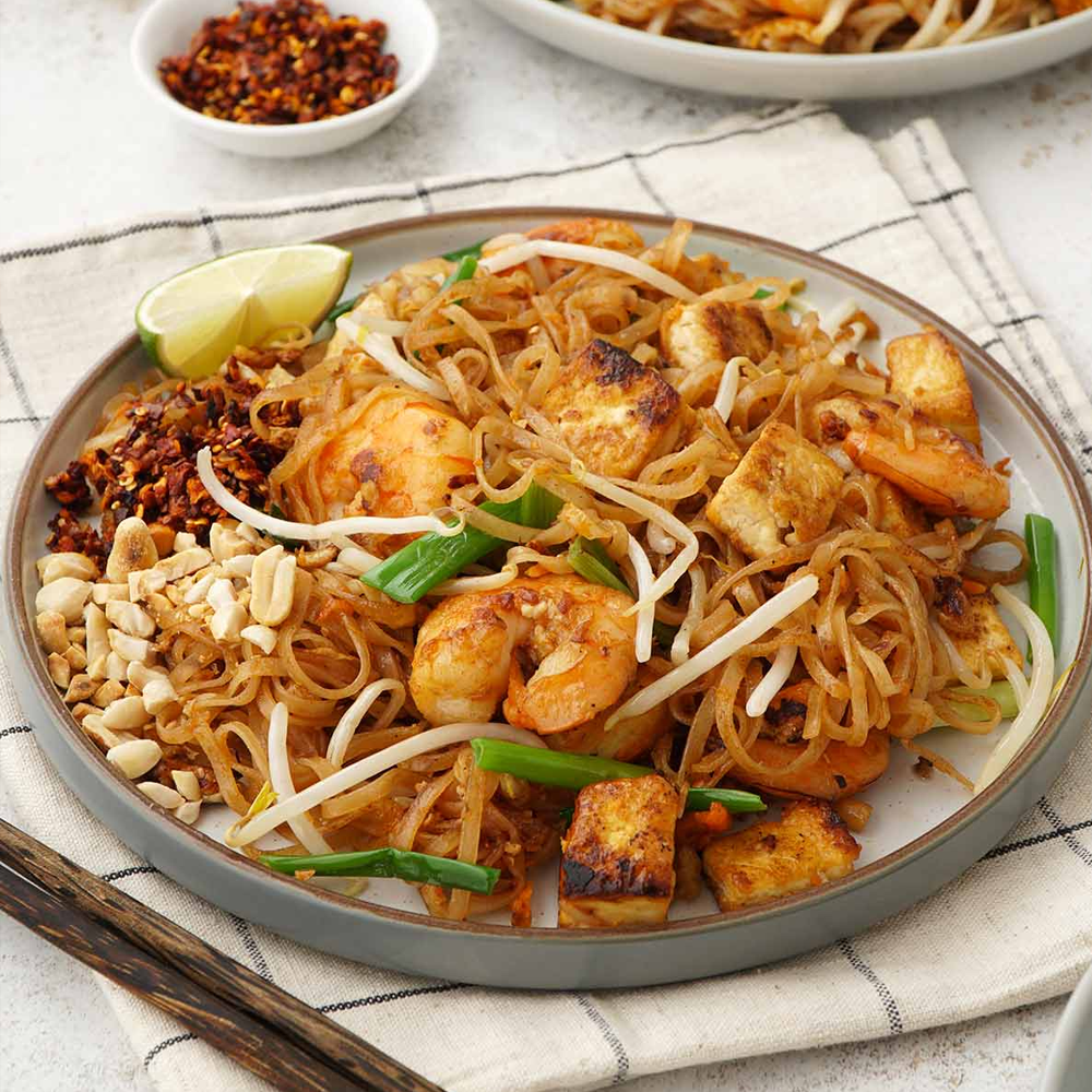 Juicy prawns stir-fried with rice noodles, egg, peanuts, and bean sprouts in a tangy tamarind sauce — a Thai classic bursting with flavour!